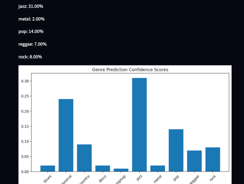 This is a machine learning-based music genre classification system that uses audio features to predict the genre of music files. The project implements a user-friendly Streamlit web interface for easy interaction.